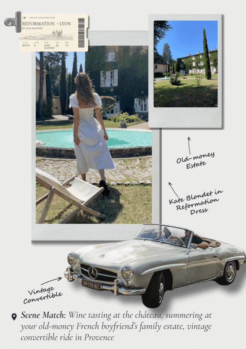 Scene Match: Wine tasting at the château, summering at your old-money French boyfriend’s family estate, vintage convertible ride in Provence